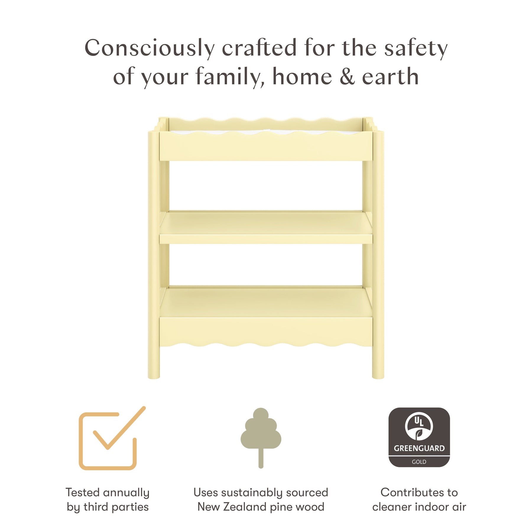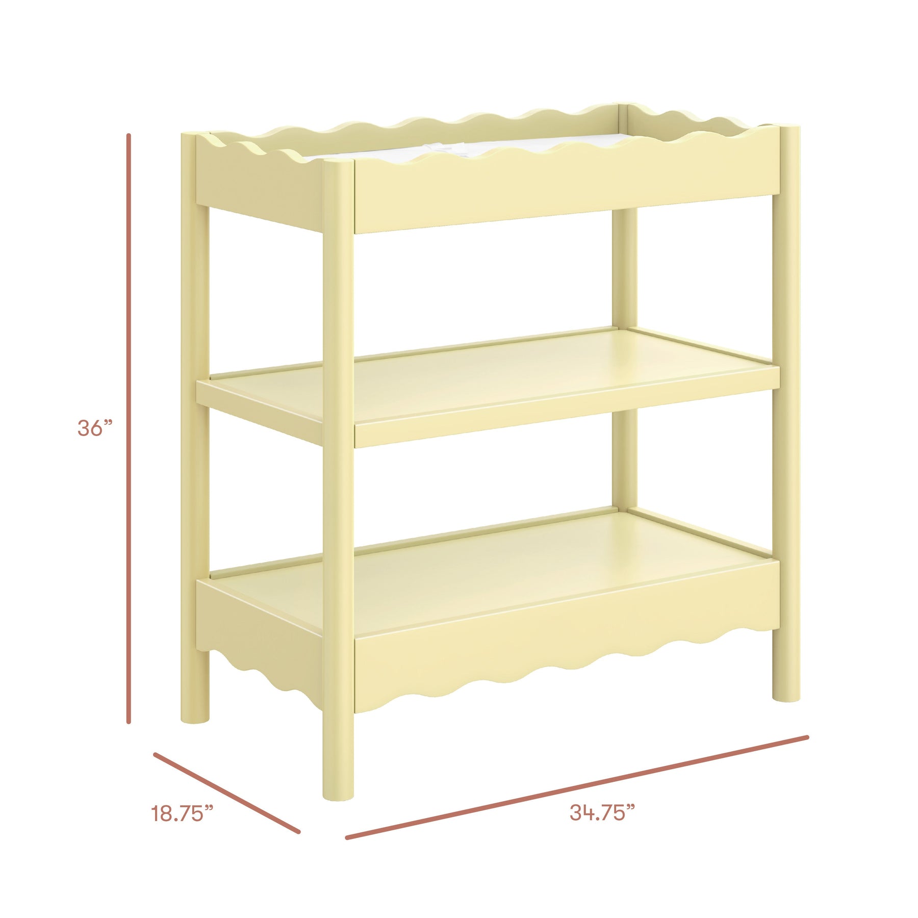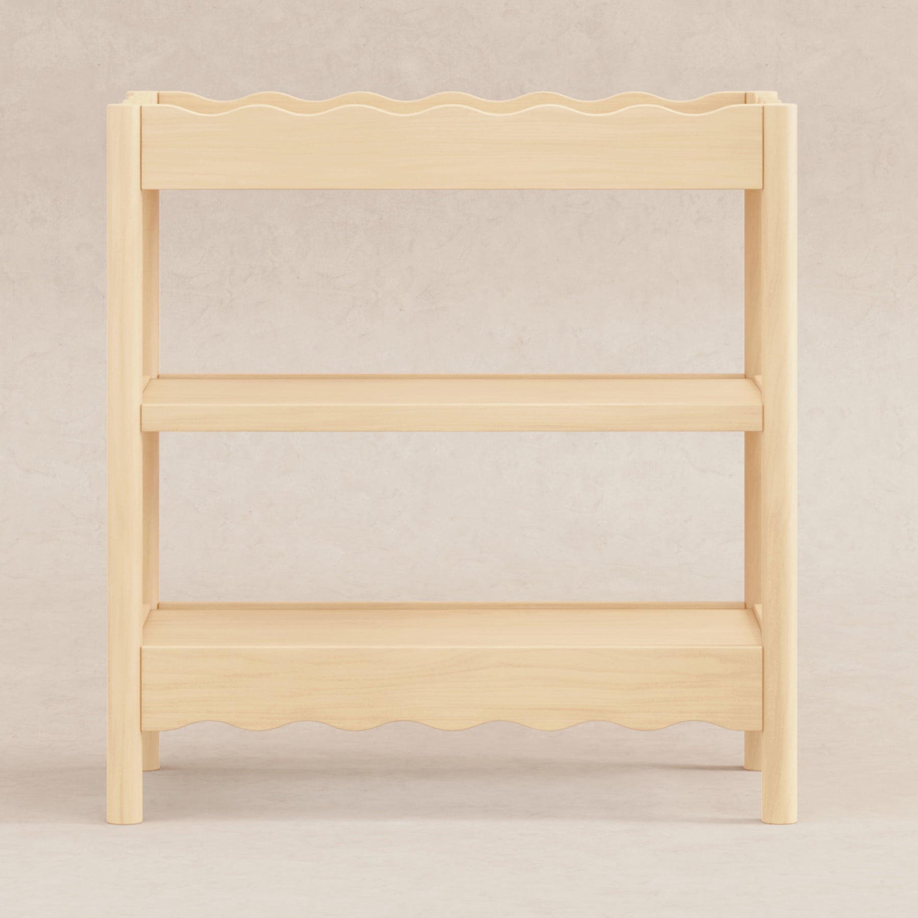 With rounded posts and wave-like edges, the Swell Changing Table has a modern appeal with an ocean-inspired design that pairs perfectly with your Swell Crib. It features two spacious, open shelves to keep all your baby’s diaper changing needs within easy reach for convenient changings.