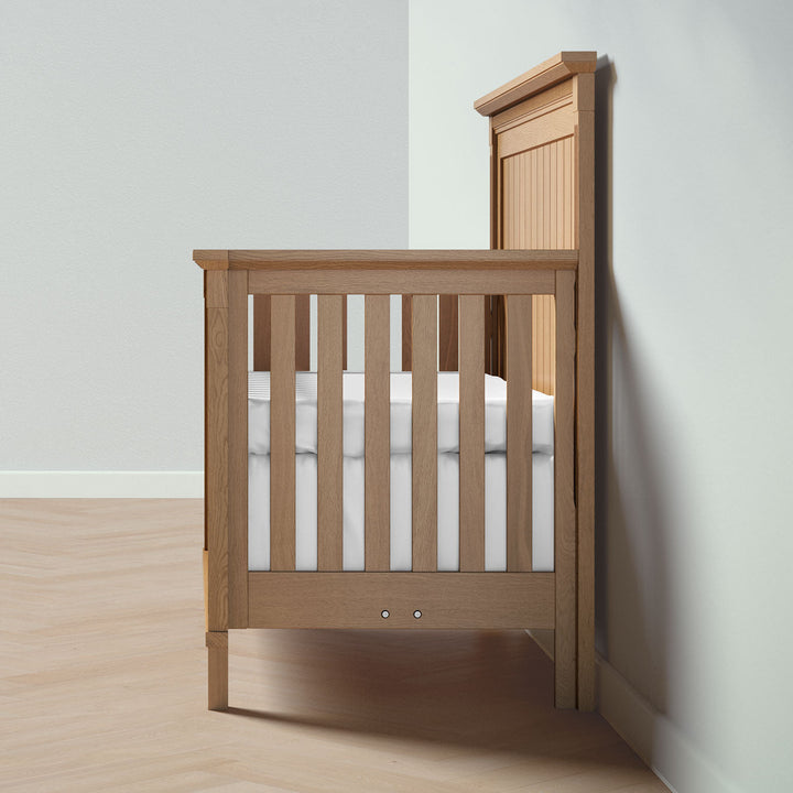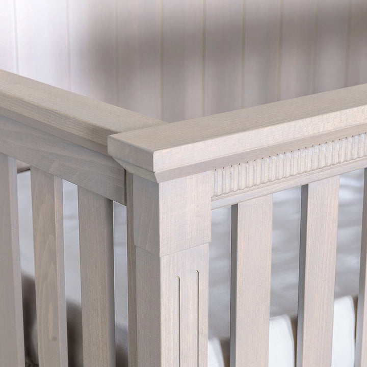 A Modern Farmhouse with superb architectural details, Edison is designed to grow along with your family. Subtle dentil mouldings, sculpted legs or the paneled headboard are adding substance and timeless elegance. This 4-in-1 convertible crib, is made from solid wood for strength and longevity, and finished in non-toxic paints and stains.