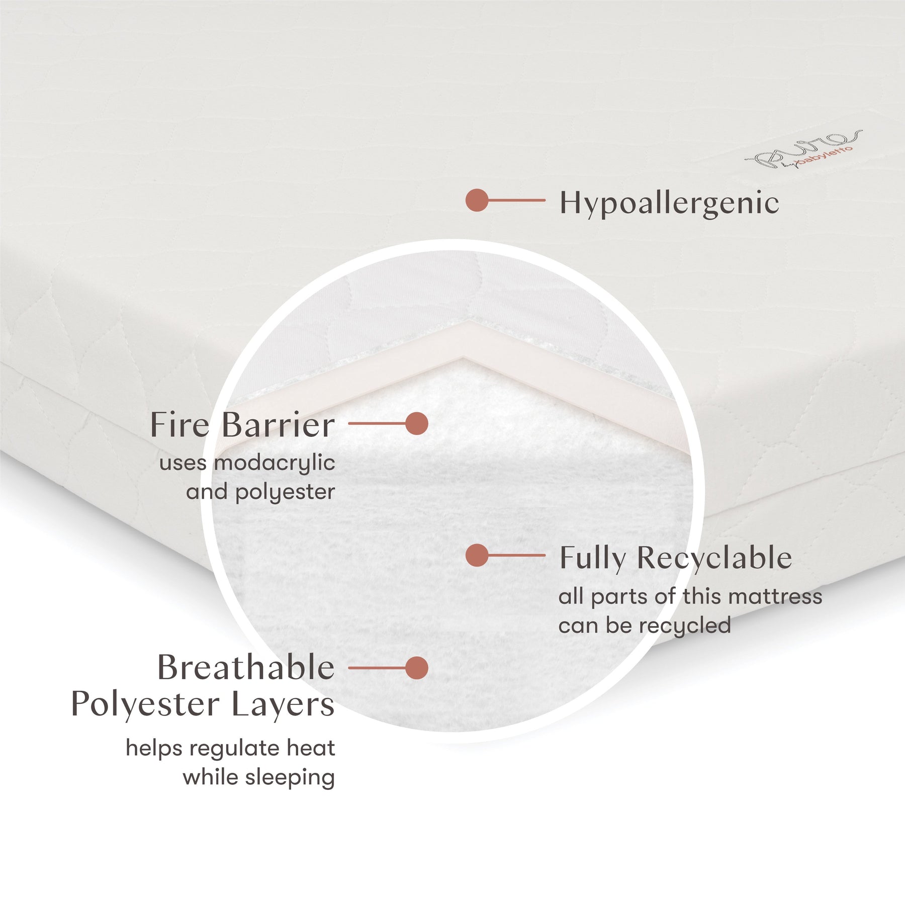• GREENGUARD GOLD CERTIFIED: This mattress has been tested for over 10,000 chemical emissions and VOCs, undergoing rigorous scientific testing to meet some of the world's most stringent chemical emissions requirements. It contributes to cleaner indoor air, creating a healthier environment for your baby to sleep, play, and grow