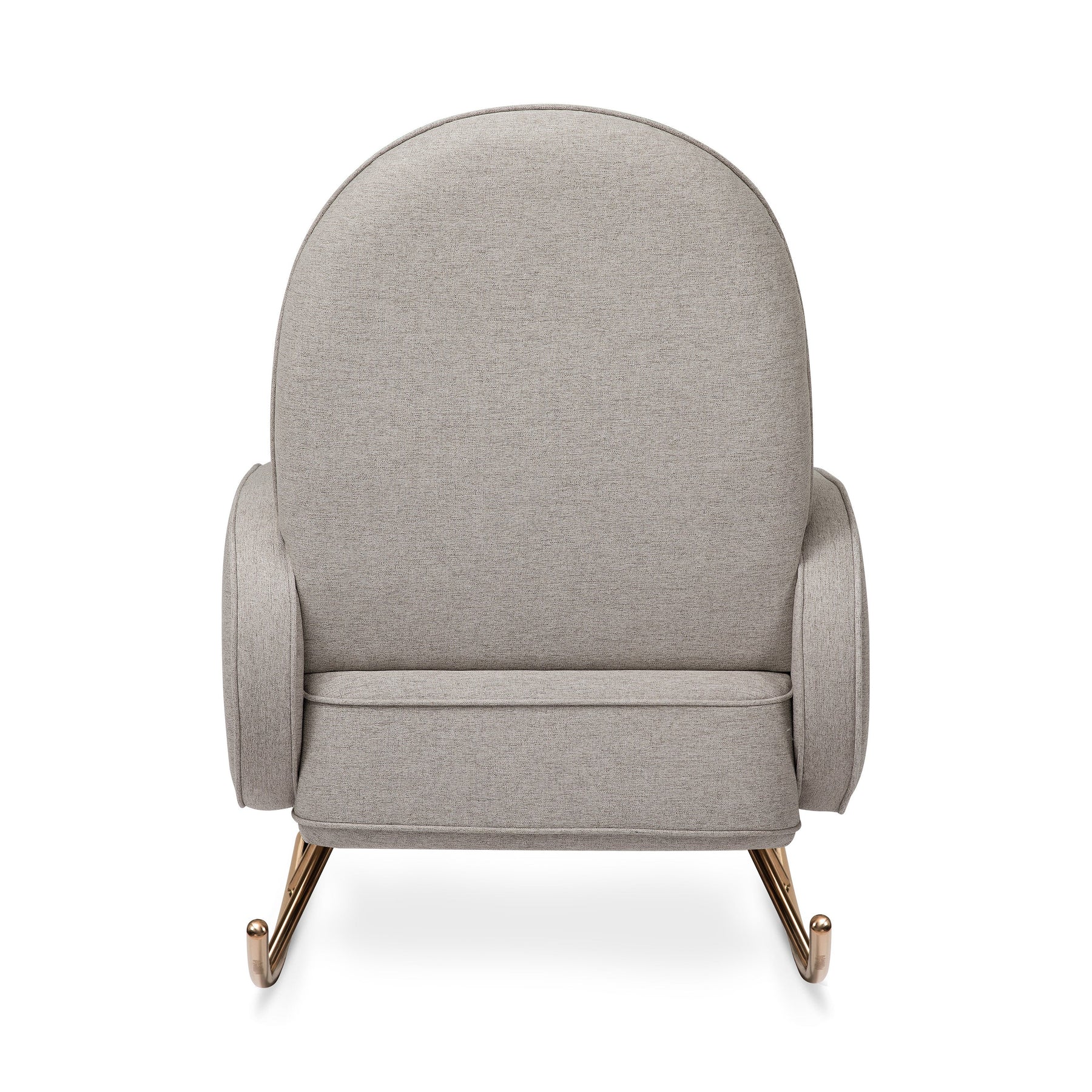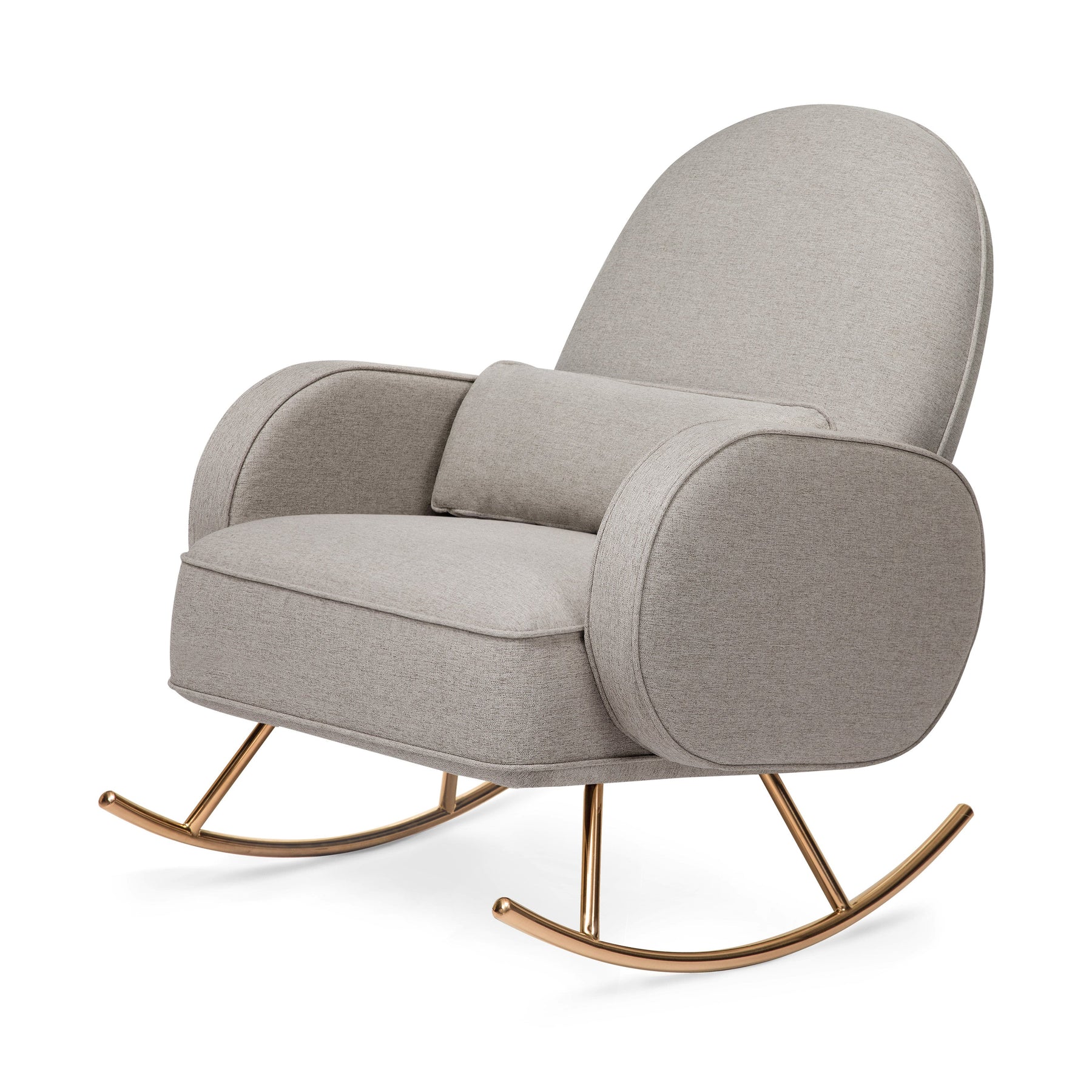 • MODERN LUXE: The compass rocker is a luxurious take on the nursery rocker with a rounded voluminous back and armrests that sit upon elegant rose gold plated stainless steel legs