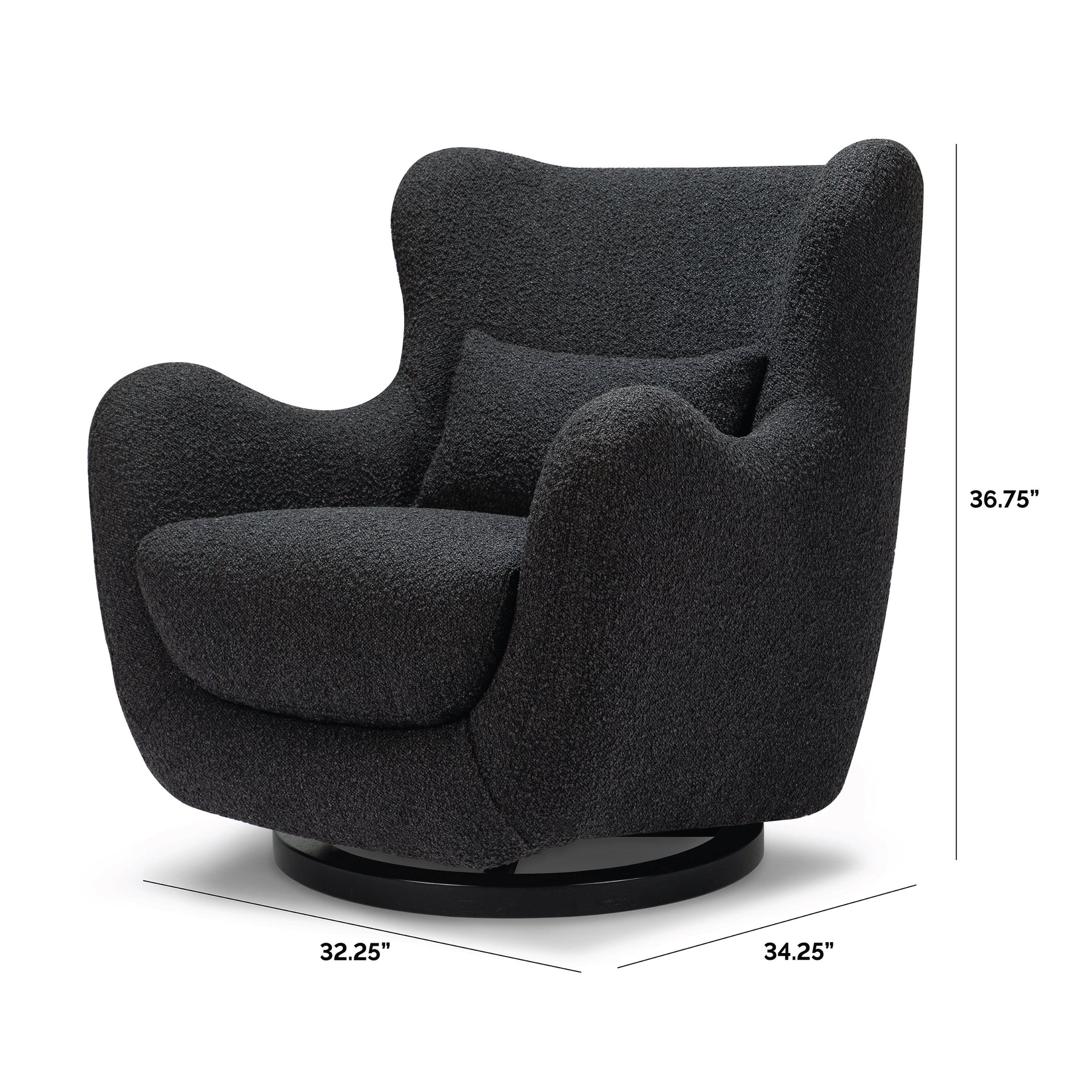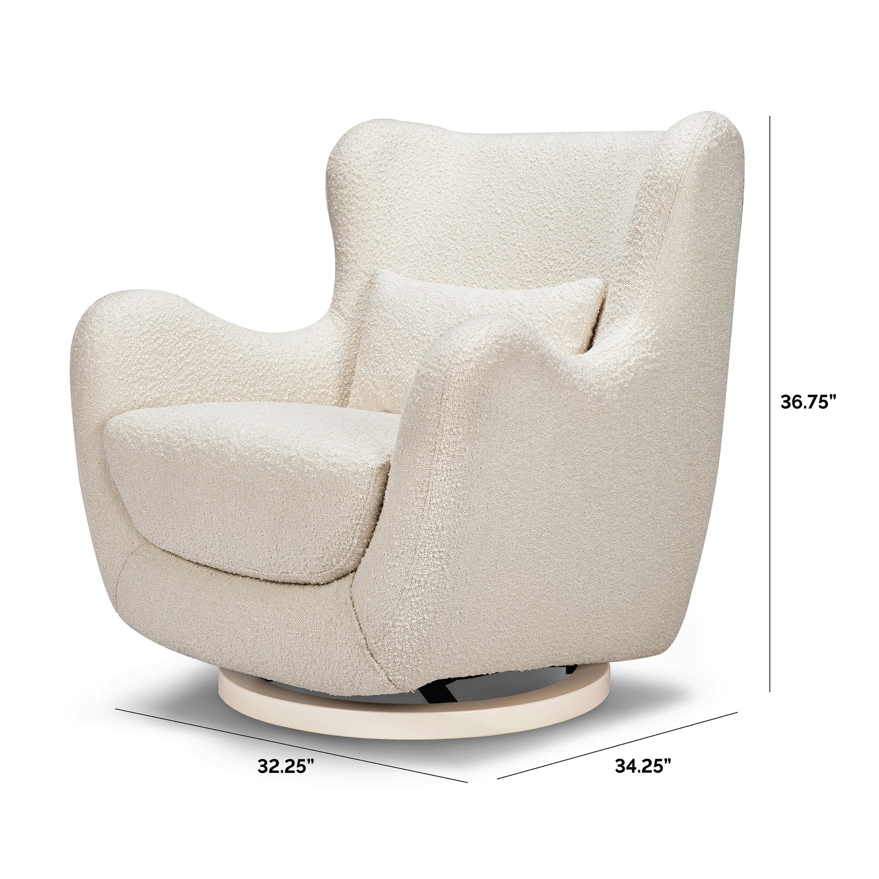 The Solstice Swivel Glider has a modern sculptural silhouette with a distinctive curved back and armrests. This glider boasts a one-of-a-kind slope design, creating a stunning visual element in any space. Crafted with precision and care, this glider is made with the finest materials. The rich boucle fabric is soft to the touch, inviting you to snuggle up with your little one. Add a touch of modern elegance to your home with the Nursery Works Solstice Swivel Glider.