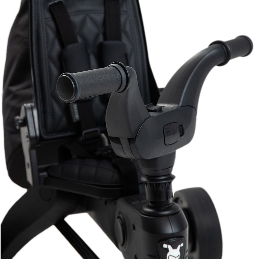 The Liki Midnight is the new way to ride in ultimate style. With a bold all black design, this edition includes elevated black faux-leather handlebars, a black anodized aluminum parent handle, and elegant faux-leather diamond-stitch backrest and seat cover.