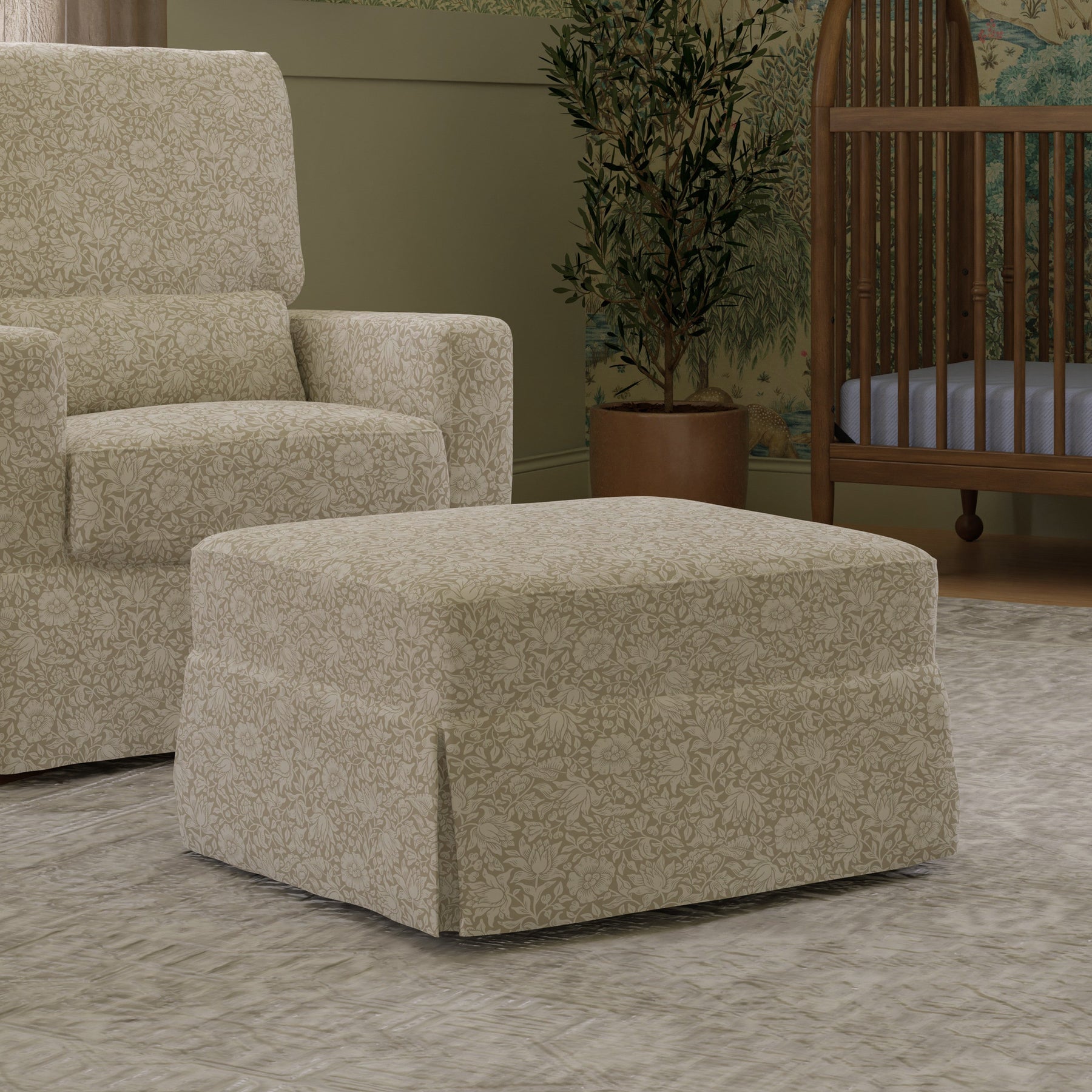 Rooted in the Arts and Crafts movement, Morris & Co. celebrates the beauty of the natural world, traditional craftsmanship, and hand-painted artistry. Our collaboration brings their iconic, richly layered prints to life on our Crawford Gliding Ottoman.