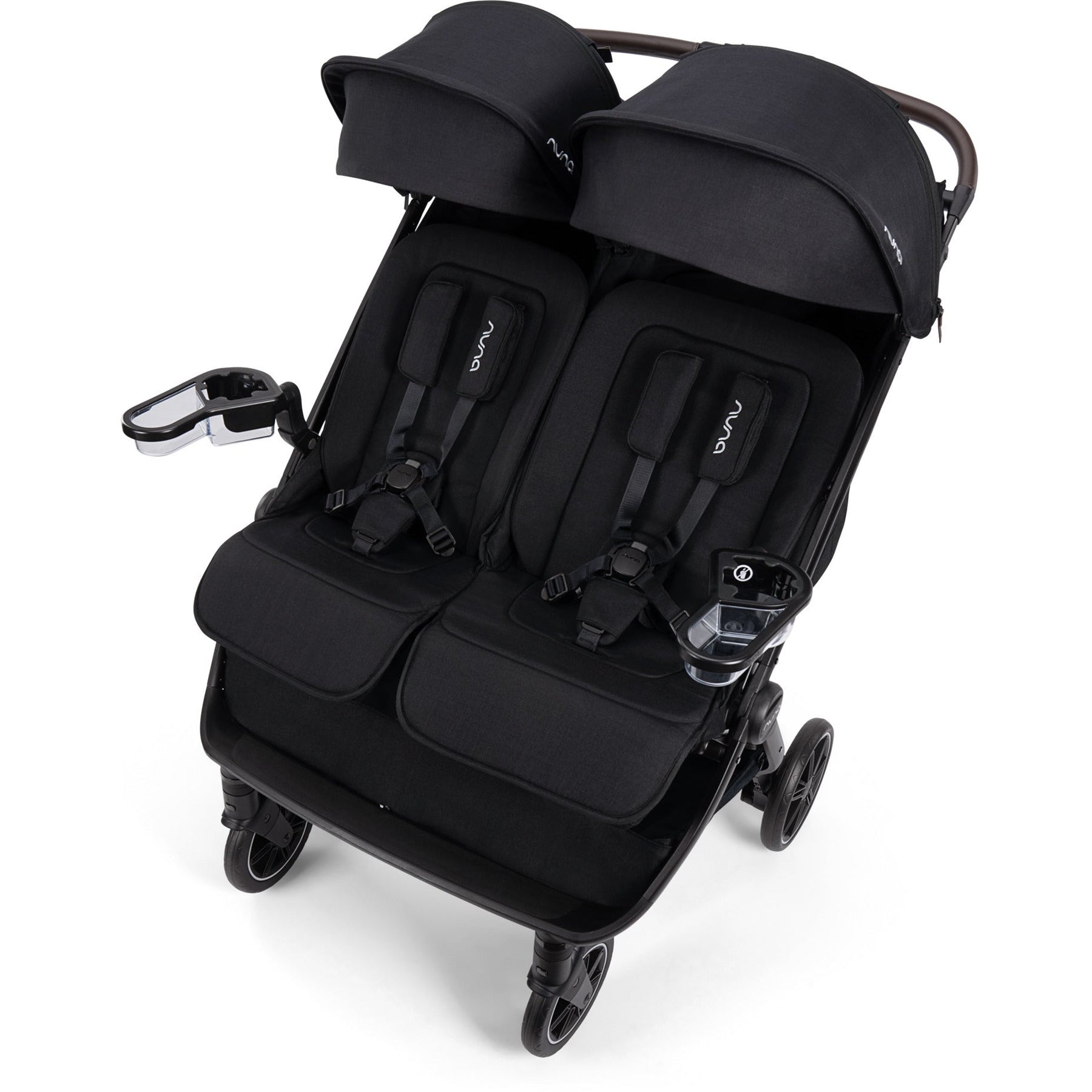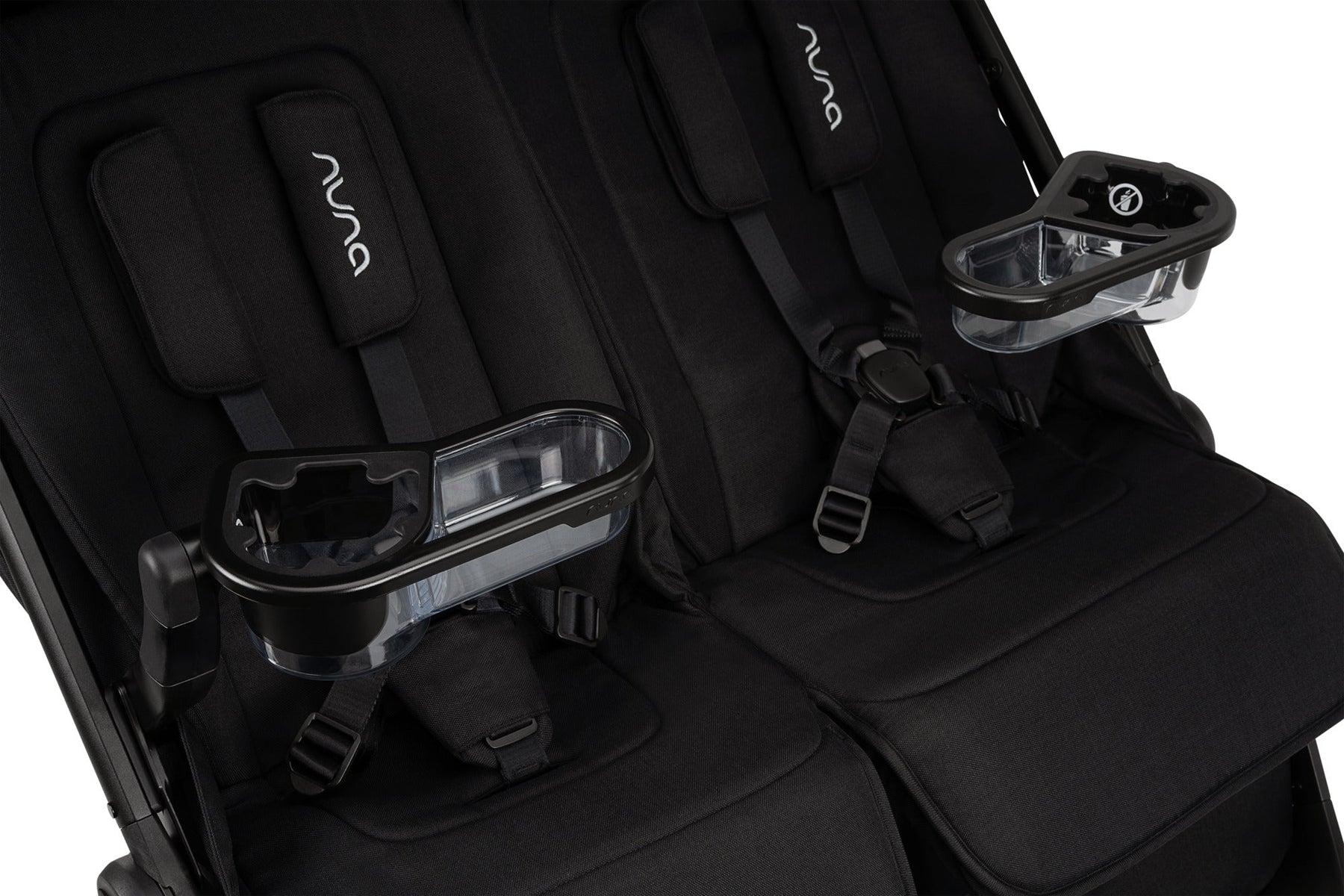 With the clip-on swivel trays attached to both sides of your TRVL dubl stroller, your little ones can store their snacks, drinks, and toys with ease.